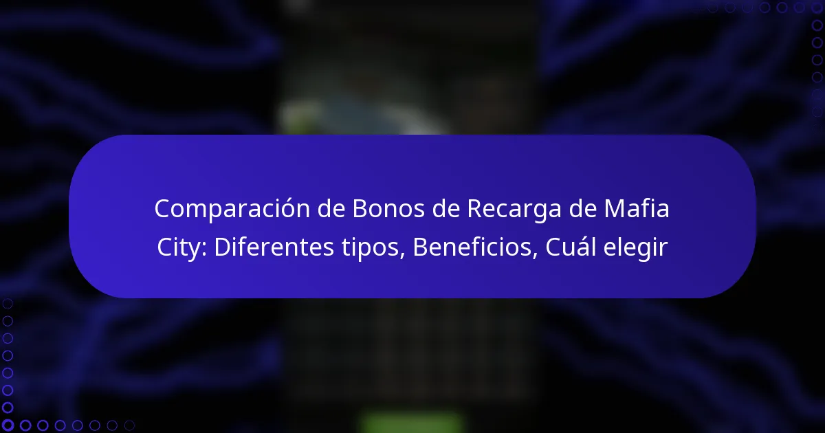 Comparación de Bonos de Recarga de Mafia City: Diferentes tipos, Beneficios, Cuál elegir