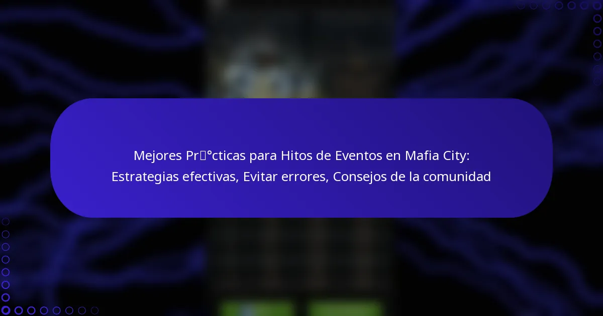 Mejores Prácticas para Hitos de Eventos en Mafia City: Estrategias efectivas, Evitar errores, Consejos de la comunidad